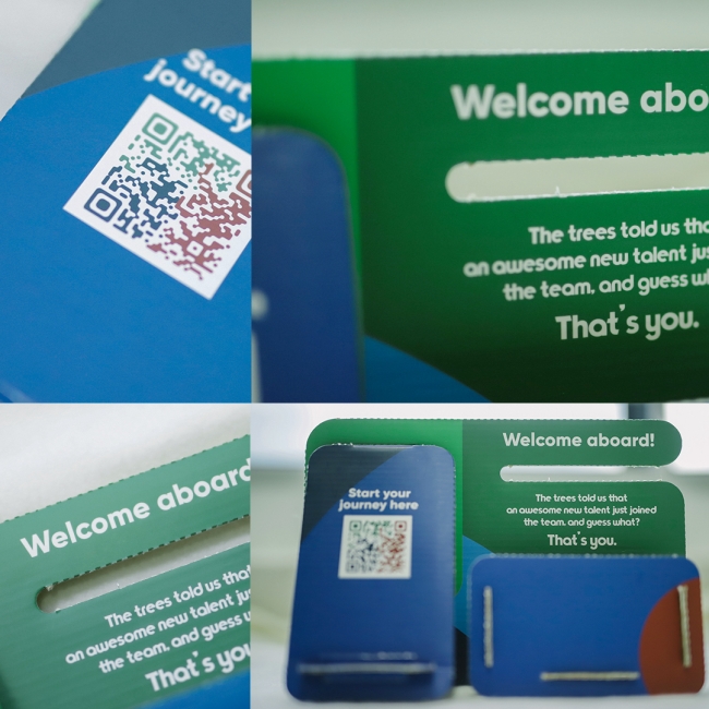 Rather than just giving talents a pile of welcoming materials, Forest Interactive made it a point of presenting the starter kits in sophisticated, eco-friendly packaging along with the idea of bringing the new joiner’s attention to build something right away. The packaging helps to tell Forest Interactive’s story, with an elegant, minimalist presentation that suggests the thoughtful and unified experience people can expect with the company.
