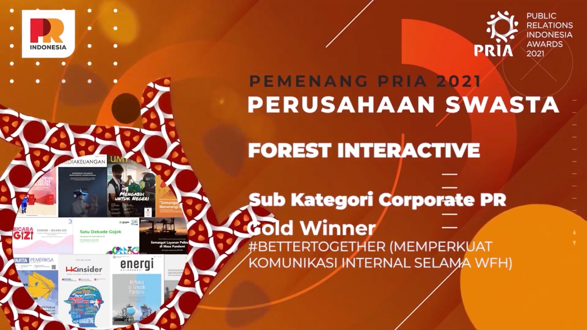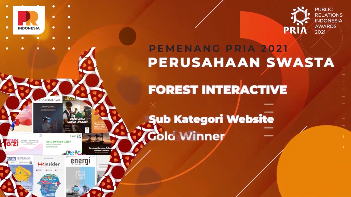 The announcement of the 6th PRIA was livestreamed virtually on PR Indonesia’s YouTube channel yesterday. Forest Interactive was also awarded Gold Winner for Owned Media under the Website subcategory during the virtual ceremony. The award, which is in its sixth year, has received a total of 599 submissions this year for nine categories; Owned Media, Digital Channel, Crisis Management, Public Relations Good Governance Manual, Annual Report, Brand Guideline, PR Program, CSR Program, and PR Department.